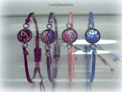 zarte Armbändchen aus 1,0 mm zarten Nylon-Seidenband mit verschiedenen Ornamenten aus Edelstahl. Alle Armbänder sind mit einem Schiebeverschluss versehen, so das sie passend für jeden Arm sind. An den Bandenden sind als Abschluss kleine Edelstahlperlen.
